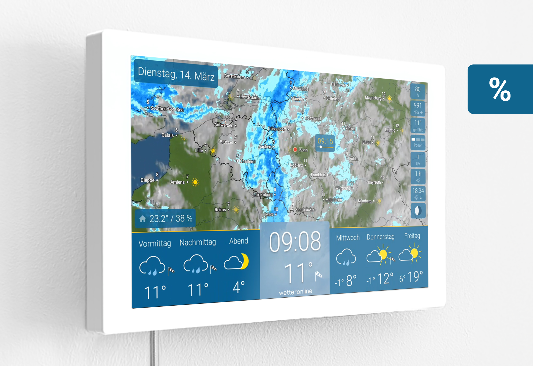 - Wetter auf Augenhöhe – dank passender, speziell entwickelter Wandhalterung.