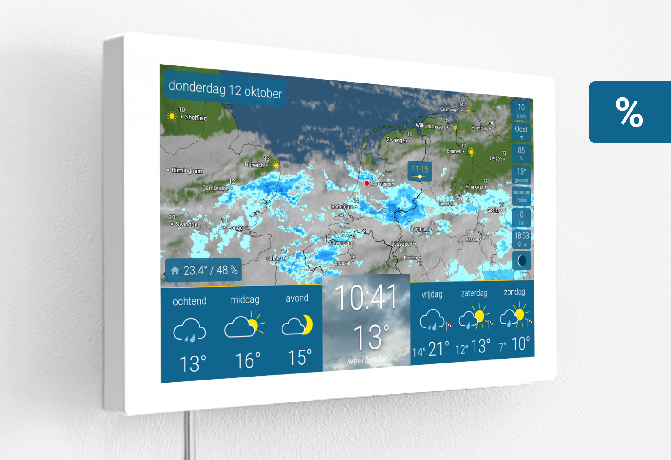 Het apparaat geeft informatie over het actuele weer voor elke locatie wereldwijd, bepaald door de tracking, duidelijk weer op een HD-scherm met stabiele kijkhoeken. Met de WeerRadar kun je het weer de komende 90 minuten live volgen. Zoom dichtbij in voor meer details of verder uit om toekomstige weersontwikkelingen te beoordelen. De Weertrend toont de weersverwachting voor vandaag en de komende dagen. Het weerstation waarschuwt voor extreem weer. Ook kunt u desgewenst aanvullende weersinformatie weergeven.